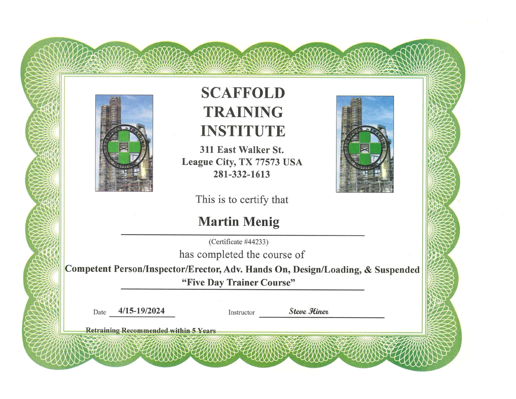 Scaffold Certification for Martin